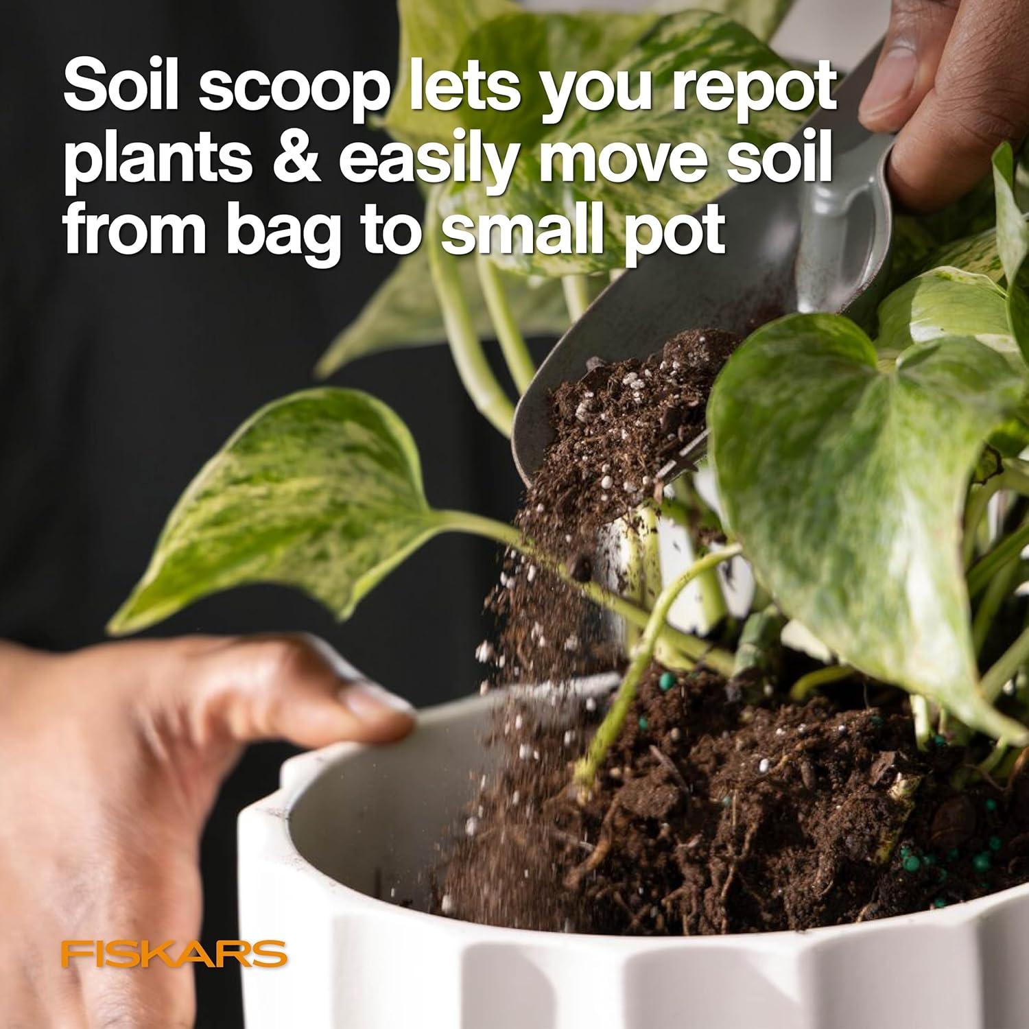 CLEAN, CONTROLLED REPOTTING: Deep soil scoop lets you move potting mix from bag to small pots with less spilling and mess, keeping your shelves, windowsills and plant stands cleaner while you work.