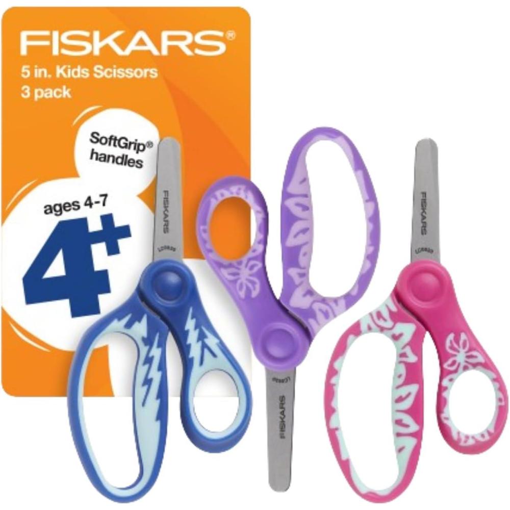 Get more for your money with our exclusive bundle deals on Fiskars 5" SoftGrip Blunt-Tip Scissors for Kids Ages 4-7 (3-Pack), Scissors for School or Crafting, Back to School Supplies, Blue, Purple, and Pink Designs(Blue Purple & Pink) and accessories.