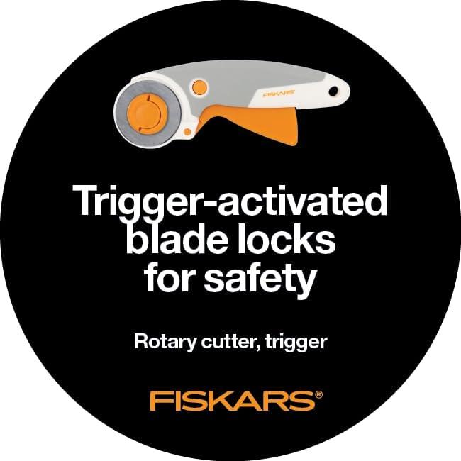 Fiskars 60mm Rotary Cutter for Fabric with Ergonomic Loop Grip And Comfort Handle, Titanium Rotary Fabric Cutter for Thick Materials, Easy and Safe Blade Change, Sewing Supplies and Quilting Tools(Easy Change Trigger)