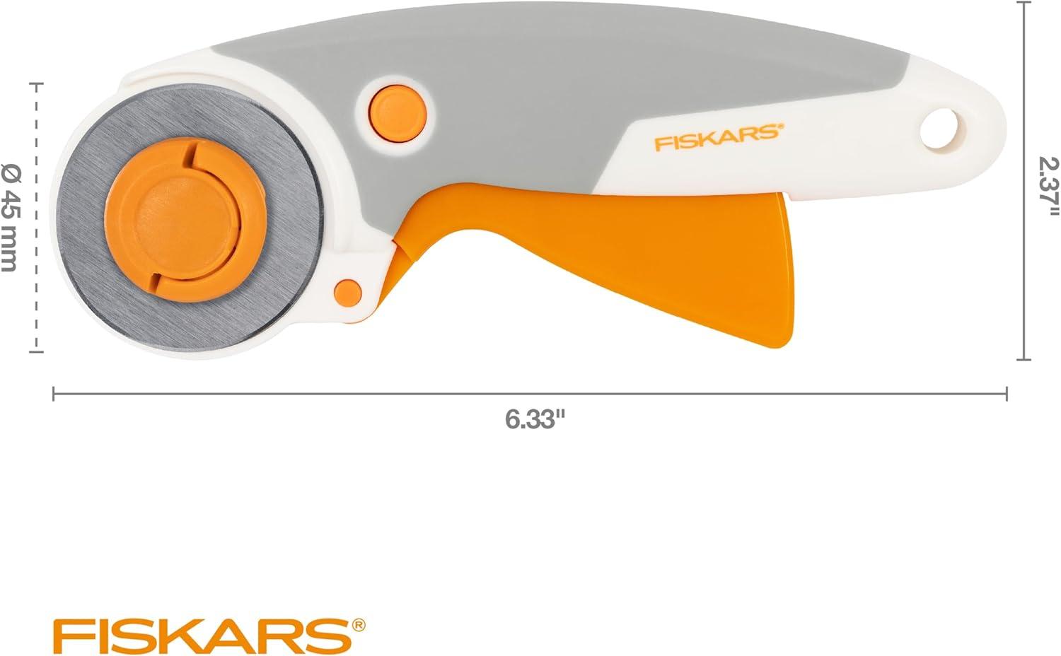 SEWING, ARTS, AND CRAFTS STAPLE: This Fiskars Rotary Cutter can cut batting, foams, multiple layers of fabric, and quilting materials; Ideal for doing arts and crafts for adults or kids; Great addition to your sewing accessories and quilting supplies