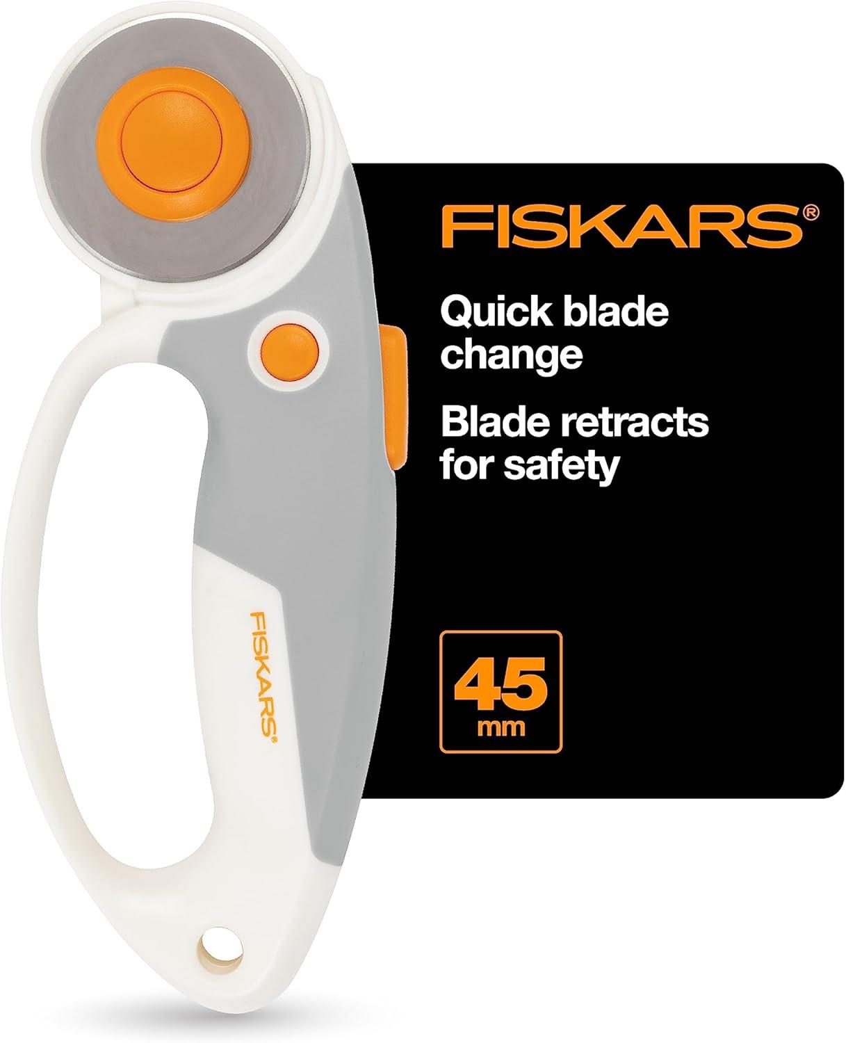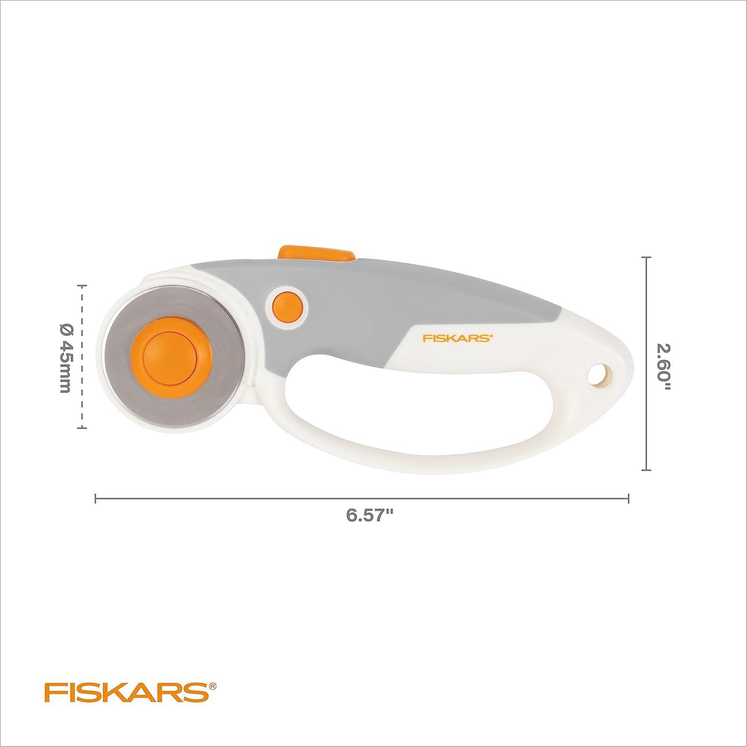 Fiskars 60mm Rotary Cutter for Fabric with Ergonomic Loop Grip And Comfort Handle, Titanium Rotary Fabric Cutter for Thick Materials, Easy and Safe Blade Change, Sewing Supplies and Quilting Tools(Soft Grip- 45mm)