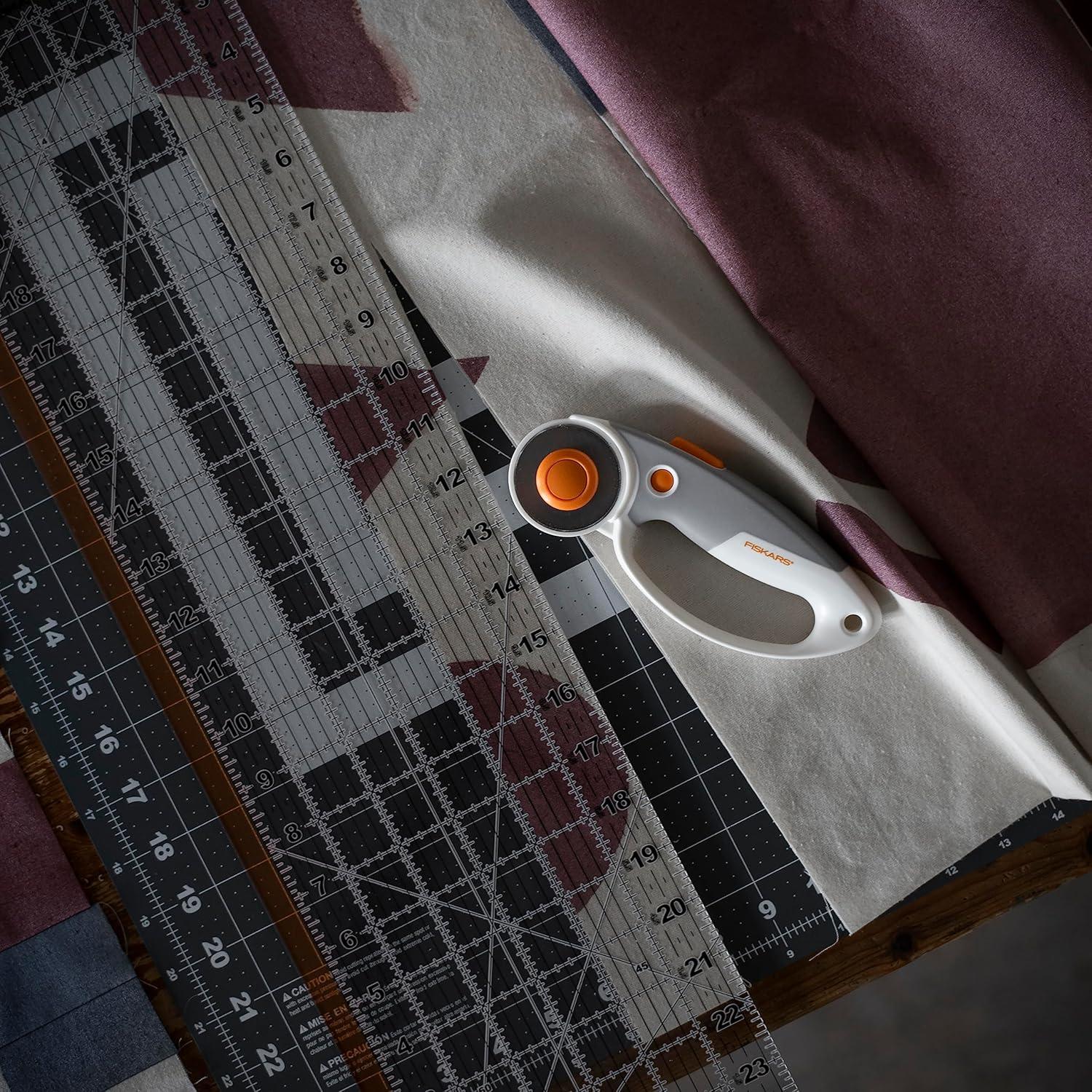 SEWING, ARTS, AND CRAFTS STAPLE: This Fiskars Rotary Cutter can cut batting, foams, multiple layers of fabric, and quilting materials; Ideal for doing arts and crafts for adults or kids; Great addition to your sewing accessories and quilting supplies