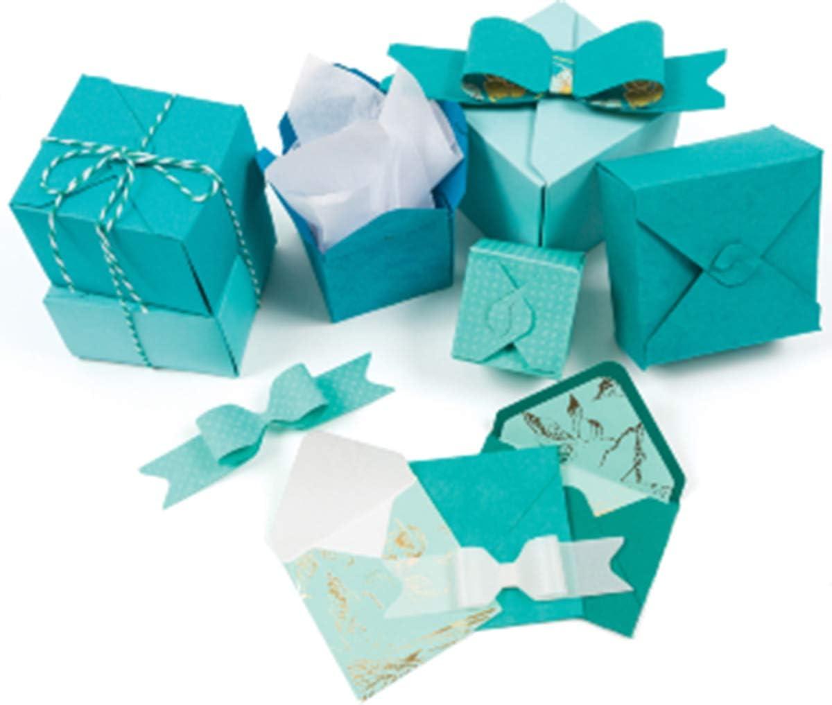 Ideal for creating custom boxes ranging from 2 x 2 inch to 4 x 4 inch size, plus envelopes and bows