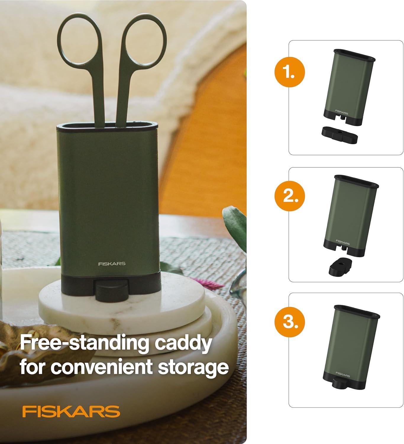 STYLISH STORAGE: Includes a free-standing caddy with a repositionable foot for stability, complementing your indoor gardening space. Warranty details available at Fiskars.com/USwarranty.