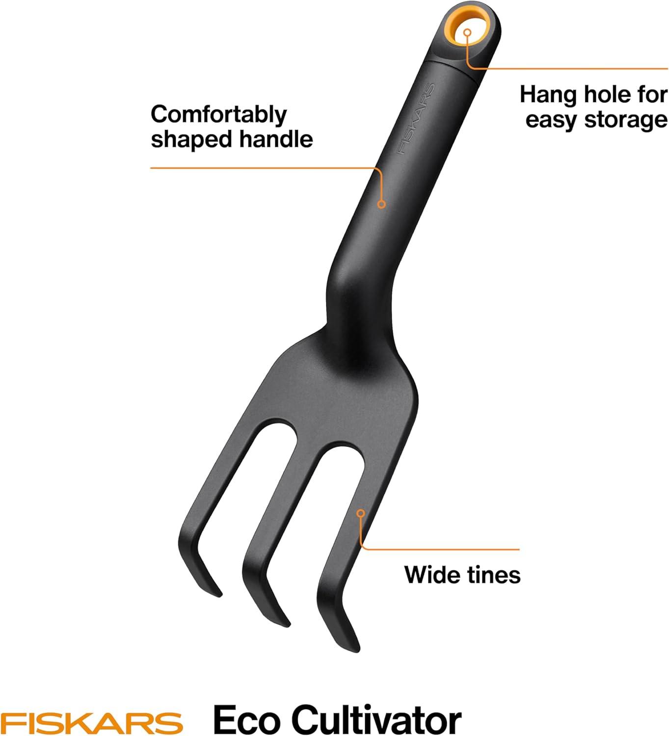 Fiskars Eco Trowel with Curved Spade, Ergonomic Handle, UV Resistance, Durable, Eco-Friendly Tool for Planters and Garden Beds(Eco Cultivator Hoe)