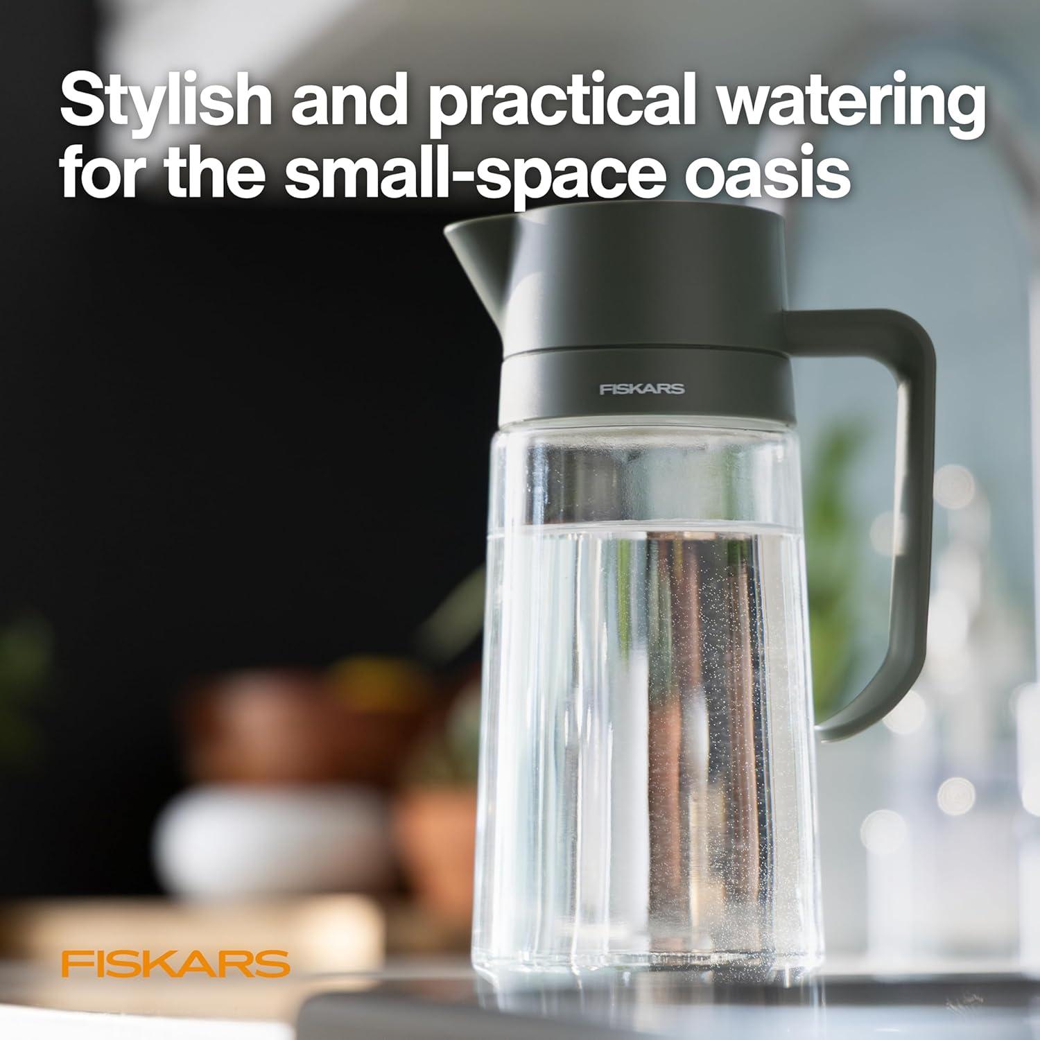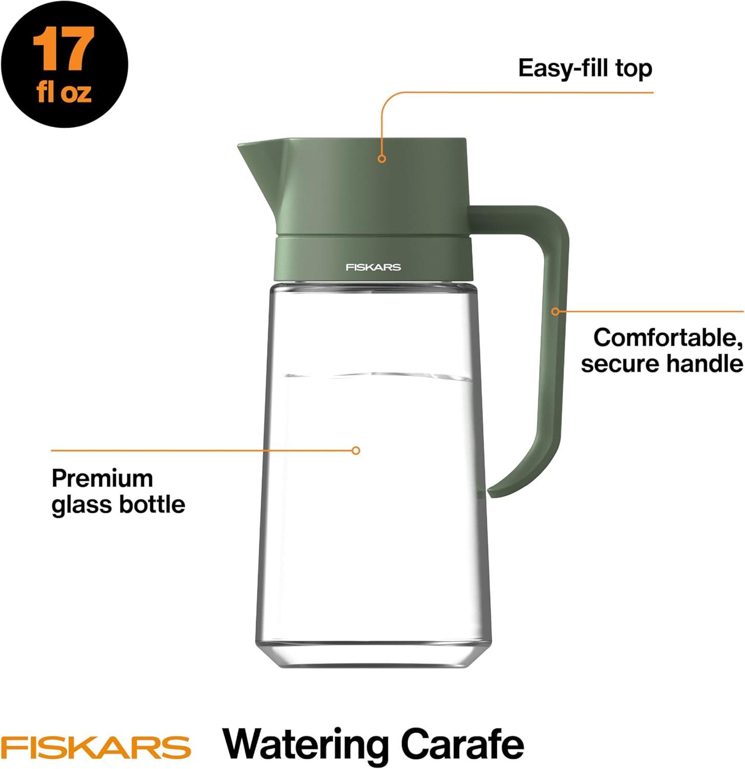 Fiskars Glass Watering Carafe for Indoor Plants – Easy-Fill Top Houseplant Watering Can, Drip-Free Narrow Spout, Small Plant Watering Pitcher, 0.5L/17 oz.