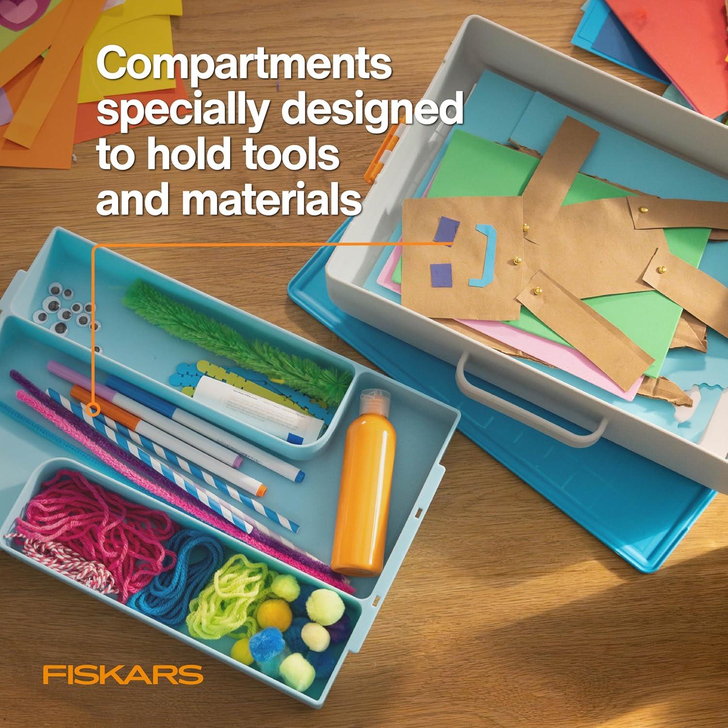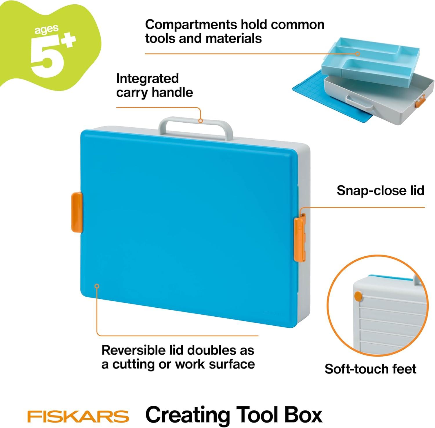 Creativity strikes a kid anywhere and everywhere. And with the Fiskars® Kids Creating Toolbox your little da Vinci can carry all their art-making essentials with them wherever they go – which means you have all the tools of distraction and entertainment at the ready (skip the electronics!) The toolbox compartments are designed specially for art supplies while the base is large enough to hold coloring books or full sheets of construction paper. There’s also a built-in carry handle plus soft-touch feet so surfaces are protected. The secure, snap-close lid keeps tools and supplies contained and can be reversed to a 9 in. x 13 in. work surface with a raised edge.