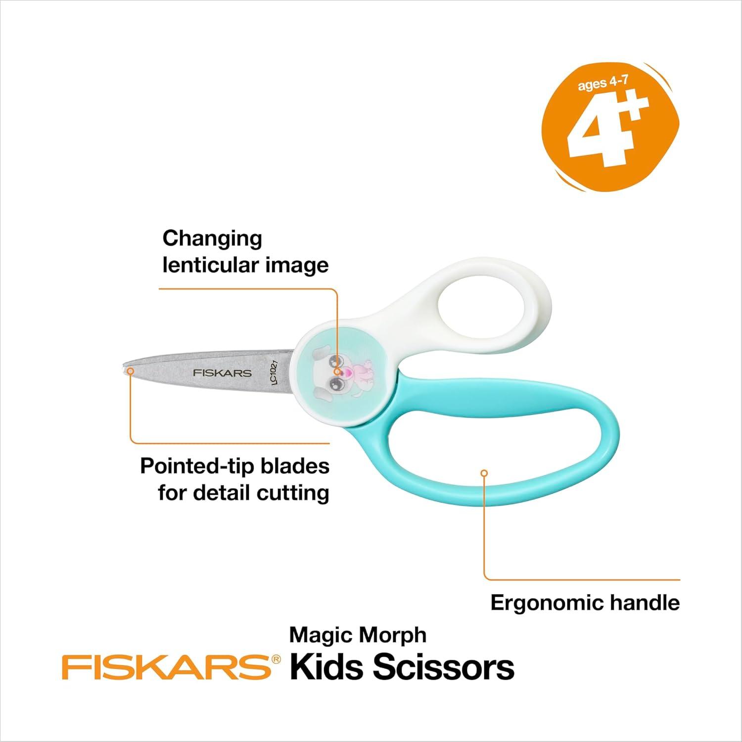Fiskars Magic Morph Pointed-tip Kids Scissors feature a unique handle with a changing, lenticular image that makes it more fun to learn and create