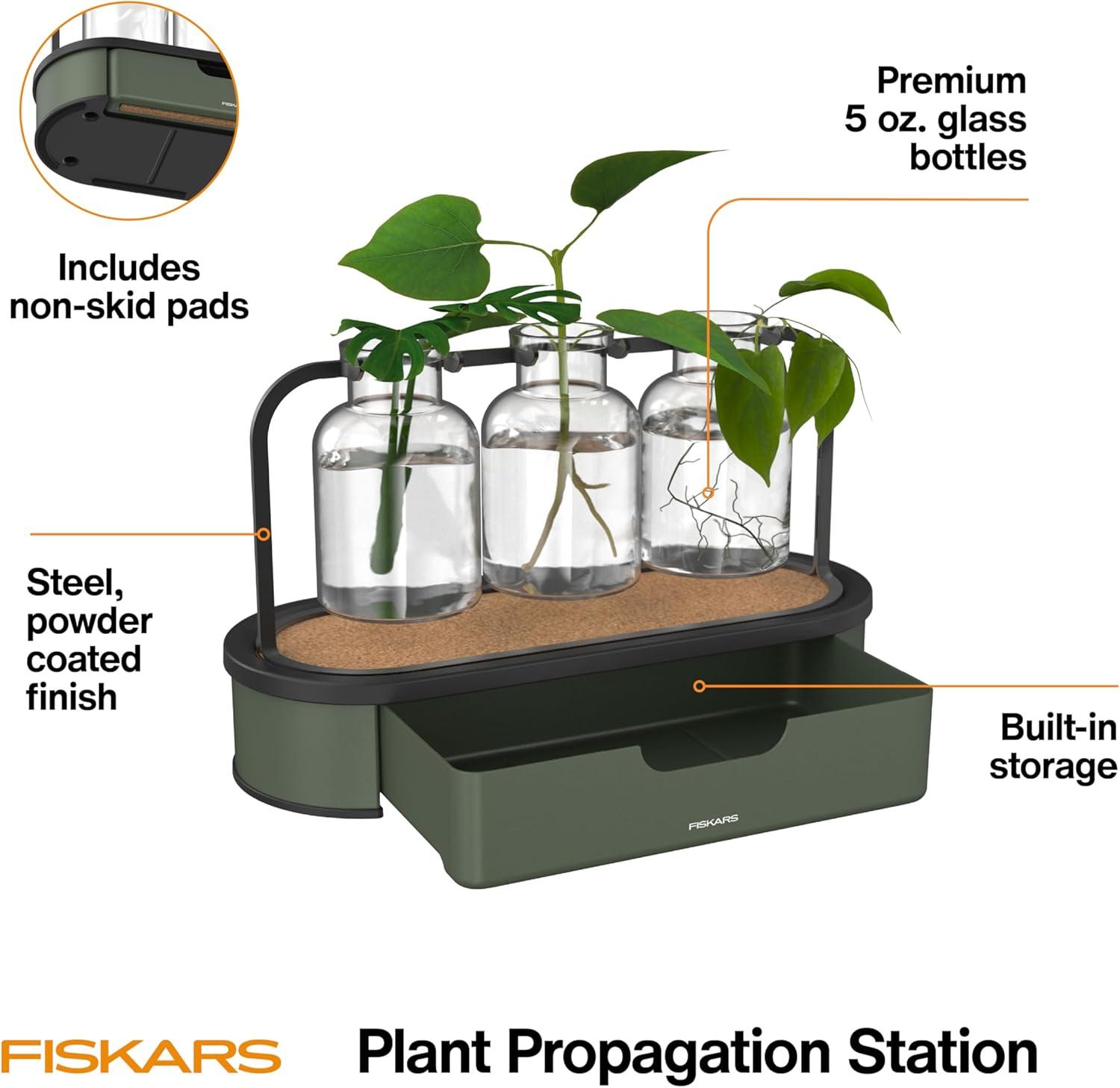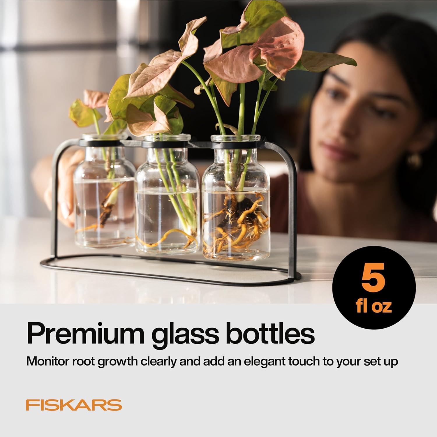 Fiskars Plant Propagation Station – Multi-Flute Glass Propagation Stand with Metal Base, Ideal for Rooting Multiple Plant Cuttings and Hydroponic Decor