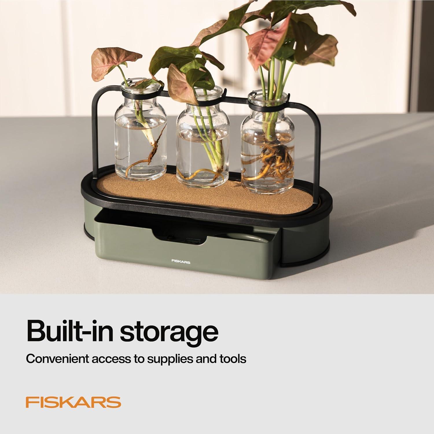 imageFiskars Plant Propagation Station  MultiFlute Glass Propagation Stand with Metal Base Ideal for Rooting Multiple Plant Cuttings and Hydroponic Decor
