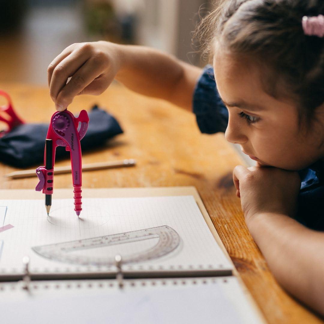SCHOOL SUPPLIES FOR KIDS 8+: Lightweight, plastic compass lets students make circles and arcs with one hand; Shatter-resistant protractor with English, metric, and angle markings; Ideal for kids ages 8+; #1 teacher-recommended brand