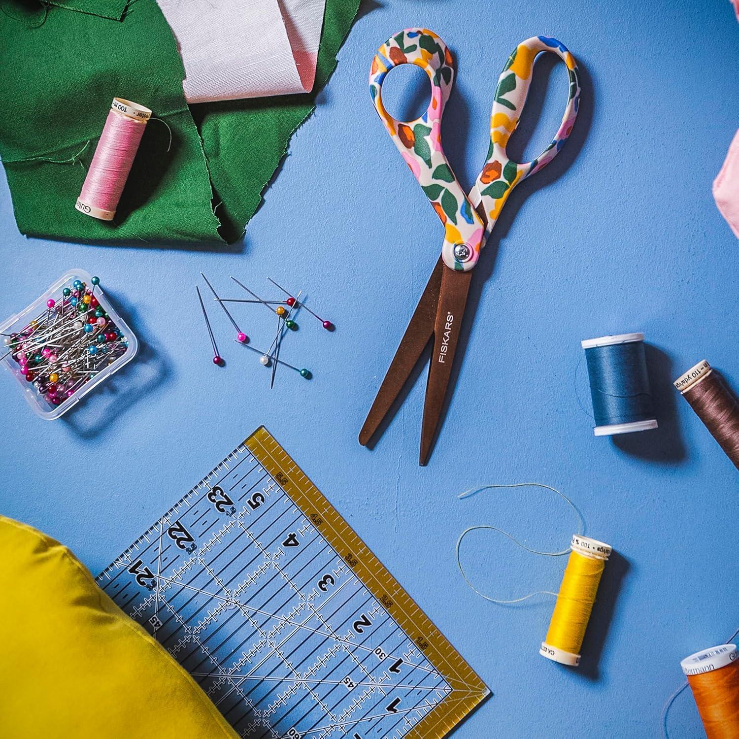Fiskars Premier Designer 8″ Scissors, Adult Scissors All Purpose with Stainless Steel Blades for Office, School, Home, Arts and Crafts, Gifts for Women, Sew Bold(Playful Posies)