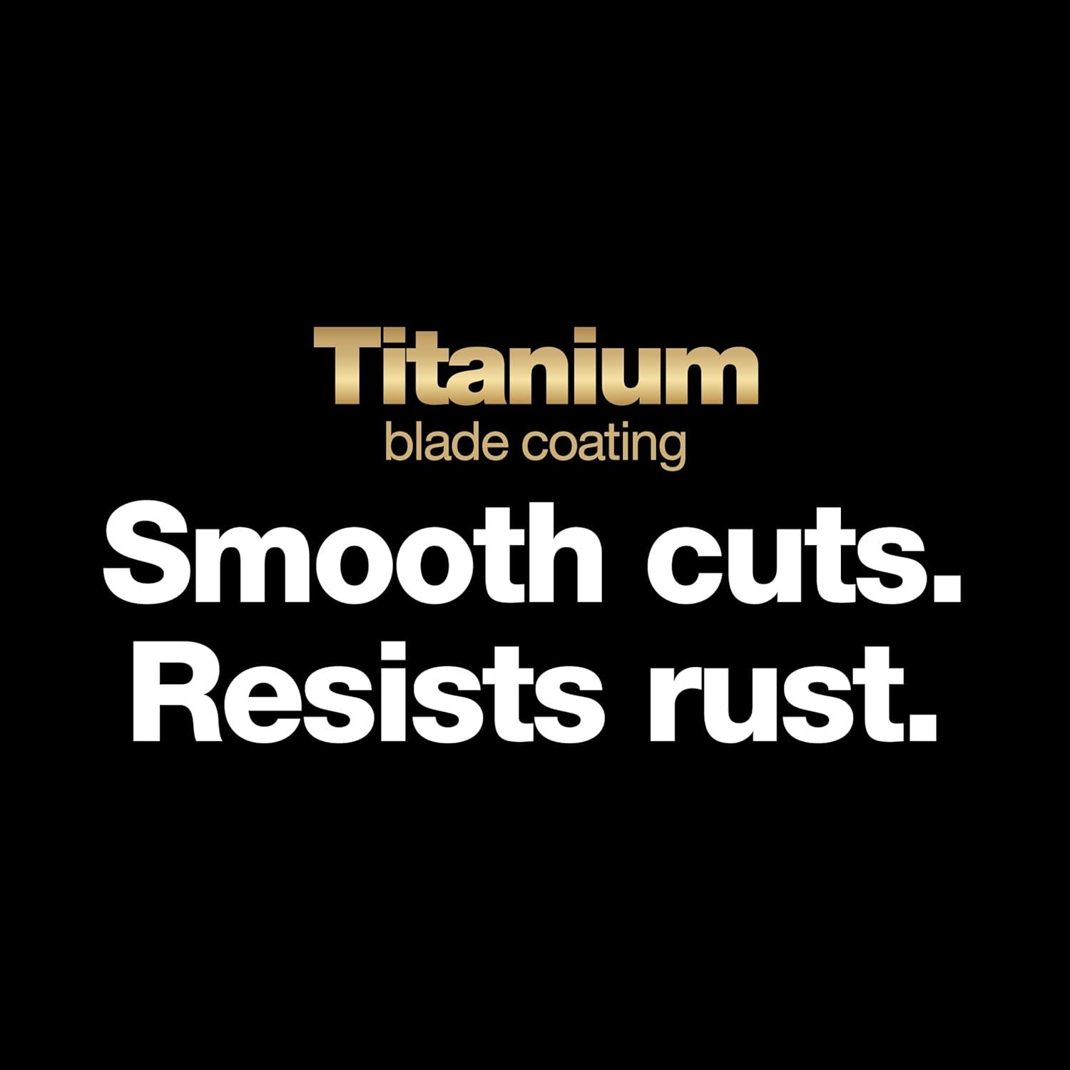 LONG LASTING AND RELIABLE: Titanium blade coating is 3x harder than steel to resist wear, scratches and corrosion