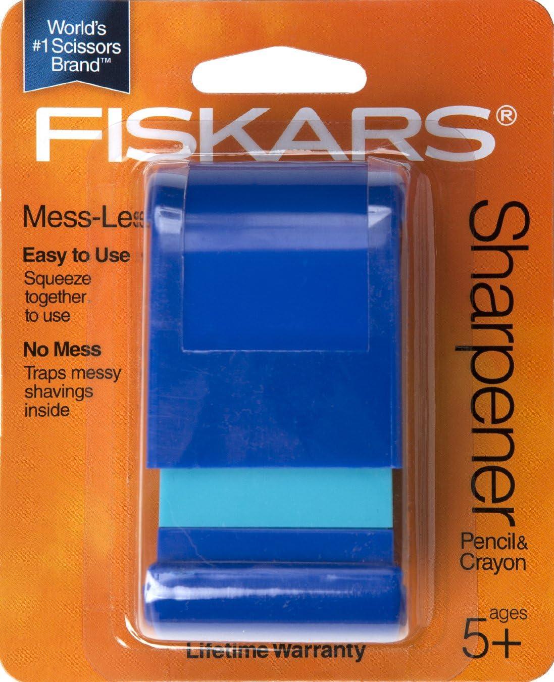 INCLUDES: 1 Fiskars Squeeze Pencil and Crayon Sharpener; Color received may vary; Full lifetime warranty