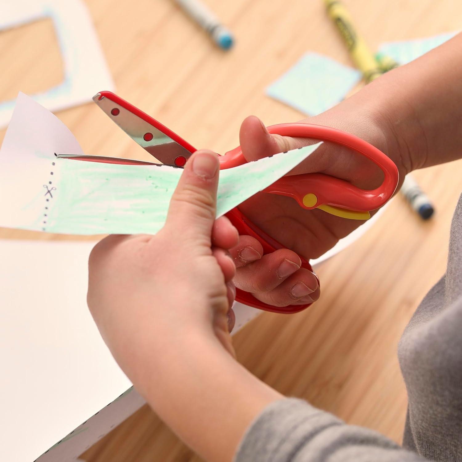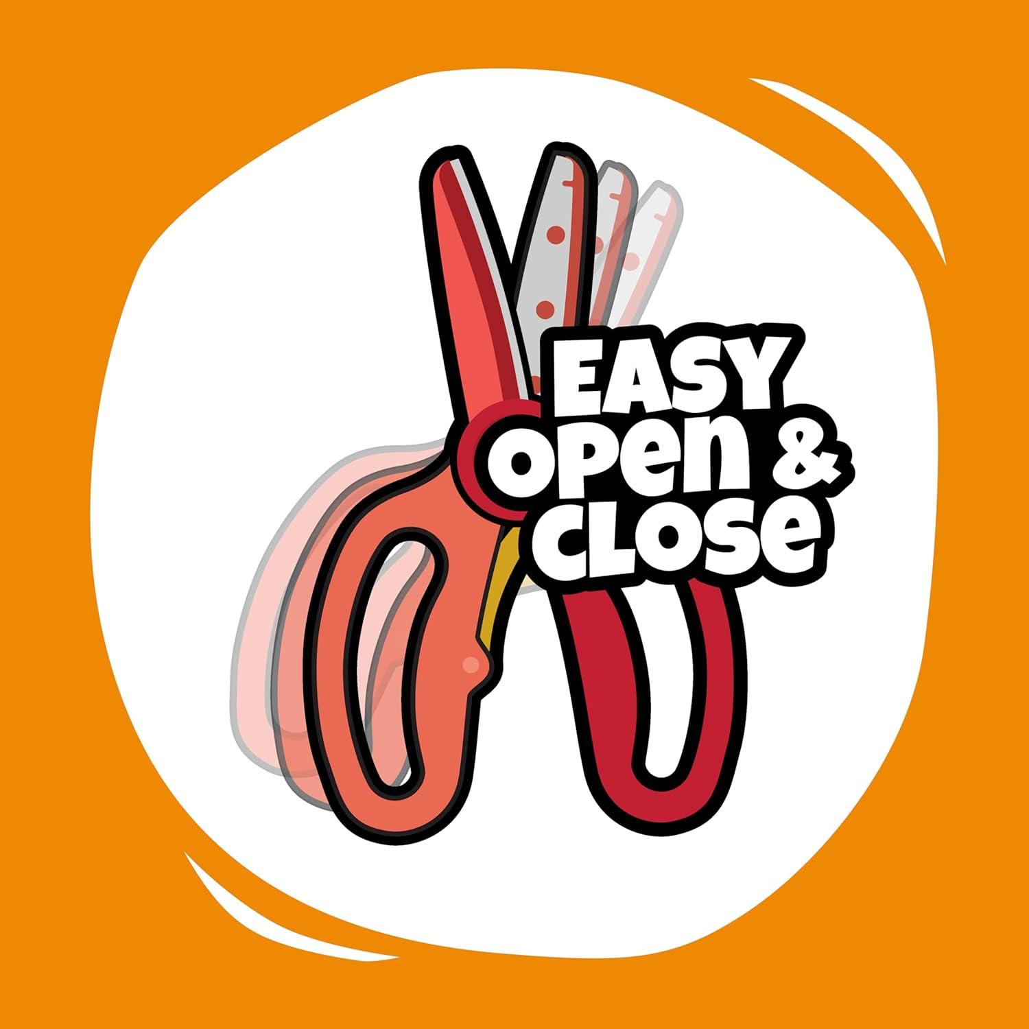 SAFE FOR KIDS: Minimal opening angle allows kids to comfortably open safety scissors blades without losing their grip; Accommodates both right- and left-handed users