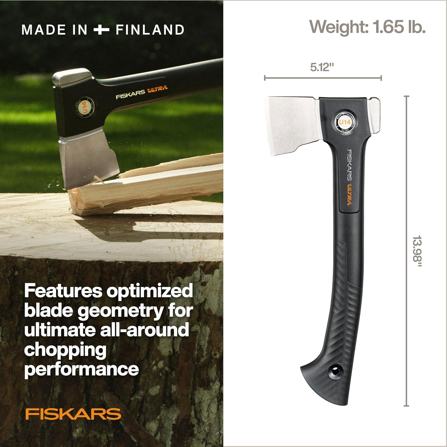 Fiskars Ultra Universal Axe U14, Sharper & Stronger Double-Hardened Steel Blade, for Chopping and Kindling, 14 Inch